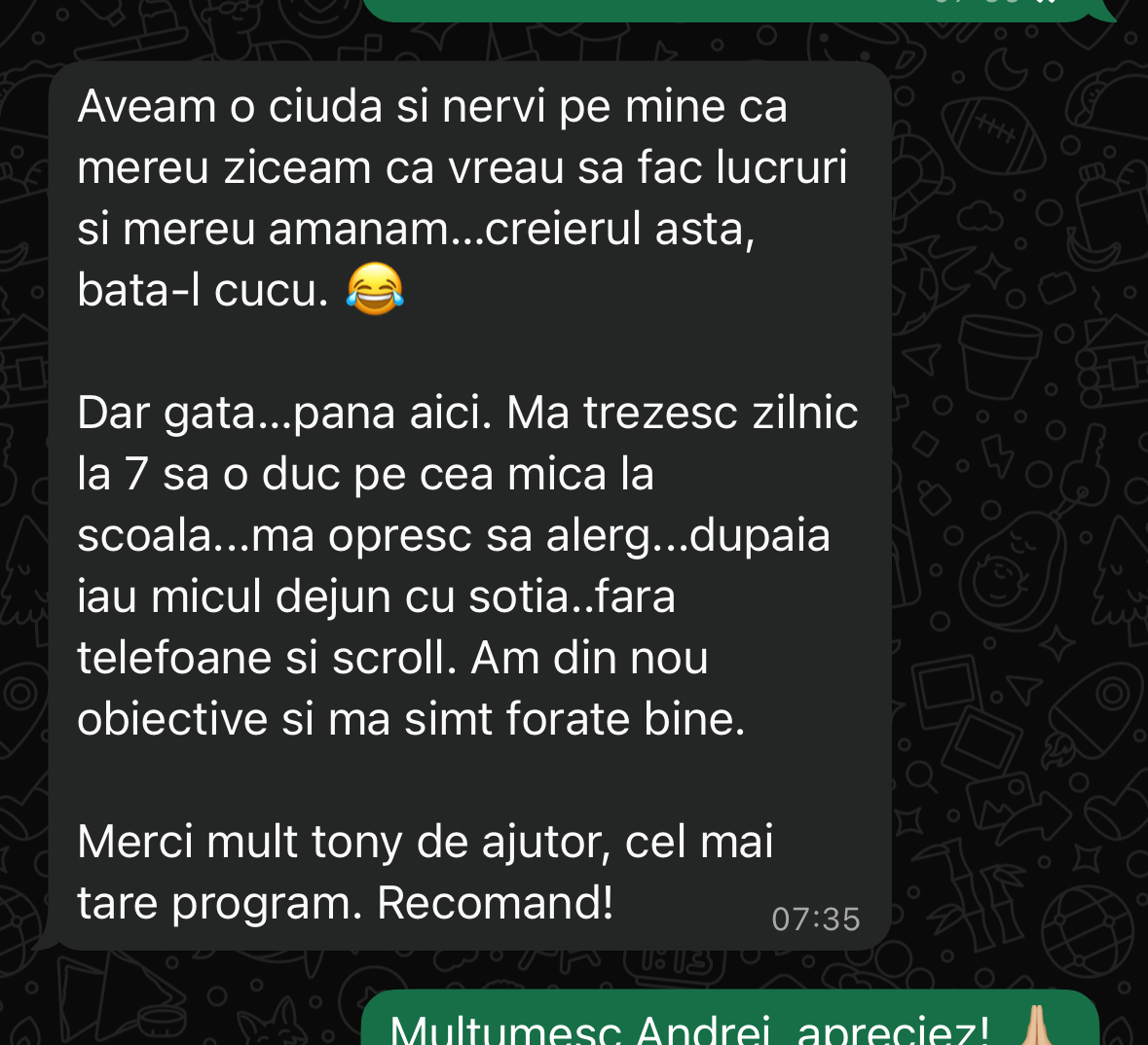 Astăzi trăiesc o viață pe care, la un moment dat, nici nu aveam curaj să o visez. Nu pentru că am fost special, ci pentru că am urmat un proces clar.